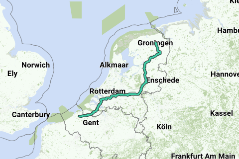 Groningen to Bruges via inner part of netherlands