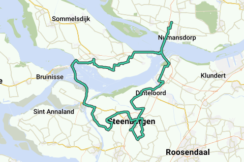 Club ride TC De Hoekse Renners. Start/finish at the carpool site at Intratuin, corner N-487/Volgerlandseweg in Numansdorp. Route via Haringvliet Bridge and Hellegatsplein to Grevelingen and Philipsdam. After the bridge over the Schelde-Rijn Canal via Nieuw-Vossemeer and the neighborhoods Pelsendijk, Rolaf and Notendaal to Steenbergen for the coffee stop. Then via Steenbergen, Welberg, and the polder west of Steenbergseweg to Dinteloord. Via Volkeraksluis and Haringvliet Bridge back to the starting location. Coffee stop at De Watertoren in Steenbergen.