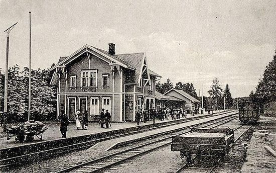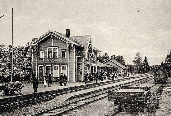 Skoppum Station is a railway station on the Vestfold Line in the village of Skoppum, in Horten, Norway. Situated 99.54 kilometers from Oslo Central Station, it serves an hourly regional service operated by the Norwegian State Railways. The station has two platforms and is itself located on an island platform, giving Skoppum a keilbahnhof design. The station building was designed by Balthazar Lange in Swiss chalet style.