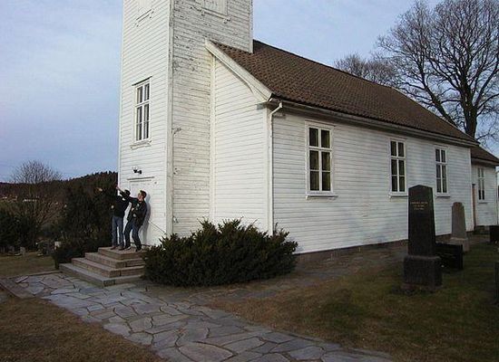 Ullerøy Church was finished in 1725. It was constructed of wood and seats 160 people. There is also a cemetery by the church.