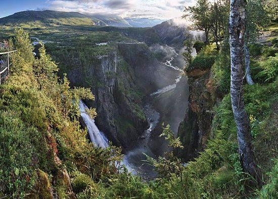Måbødalen is a narrow valley in Eidfjord Municipality in Vestland county, Norway. The 7-kilometre long valley begins at the village of Øvre Eidfjord and ends at the Sysendalen valley on the western side of the Hardangervidda plateau. The valley contains one of the most notable waterfalls in the country: Vøringfossen, which is easily accessible via Norwegian National Road 7 .