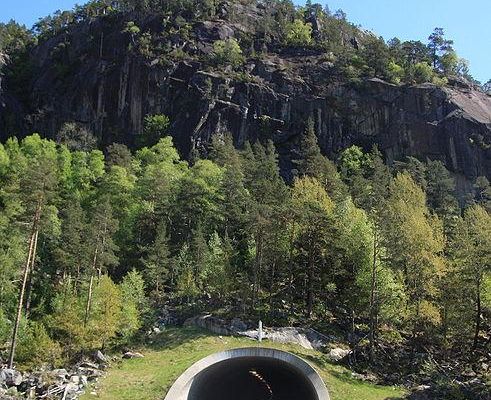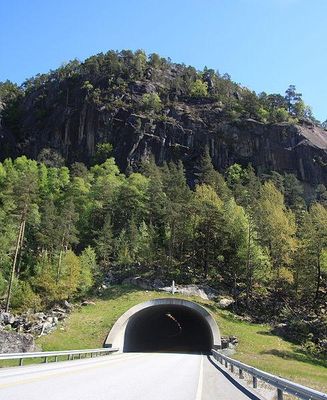 The Rullestad Tunnel is a road tunnel in Etne municipality in Vestland county, Norway. The 2,920-metre long tunnel is located on the European route E134 highway, about 4 kilometres east of the village of Fjæra and about 9 kilometres southwest of the village of Skare in neighboring Ullensvang municipality. The tunnel opened on 30 June 2006 to replace a narrow, winding mountain road that included some hairpin turns. The new tunnel has a maximum grade of 6.6%.