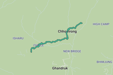Start at Tadapani (2700m), cross the Kyumrung Khola-river, continue to Gurjung (2040m), Talung (2155m), Chomrong (2220m) to Sinuwa (2335m).