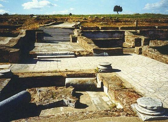 The Roman Ruins of Pisões , is an important Roman villa rustica located in the civil parish of Beja in the municipality of Beja, in the Portuguese Alentejo, classified as a Imóvel de Interesse Público .The urban villa dates back to the 1st century, and continued occupied until the 4th century, owing to the artefacts discovered on site that included ceramics, terra sigilata, friezes, glass, bronze and coins. The area, due to its fertile and abundant biodiversity made the location a viable site to develop a farm, support livestock and mine, products that support many of the local markets. Its occupation was discontinuance; apart from the Roman period, the discovery of two Visigothic capitals and the existence of black ceramics, indicate a period of cross-pollination at the site.