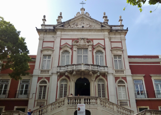 The Bemposta Palace , also known as the Paço da Rainha , is a neoclassical palace in the area of Bemposta, now the civil parish of Pena, in Lisbon. It was originally built for Queen Dowager Catherine of Braganza on her return from London to Lisbon and served for many years as her residence. It was then transferred to the Casa do Infantado , before becoming the residence of John VI of Portugal until his death. After Queen Maria II of Portugal transferred its title to the Army, it became the Portuguese Military Academy.