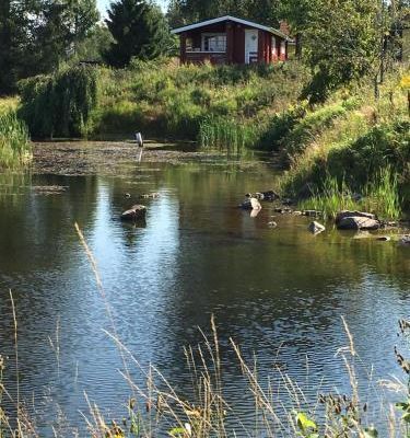 Valla Stuga is located 4 km south of Kristinehamn and offers free WiFi and parking, as well as a terrace with views of the pond. Karlstad is 50 km away. The cottage features a kitchenette with a microwave, coffee maker and electric kettle.
