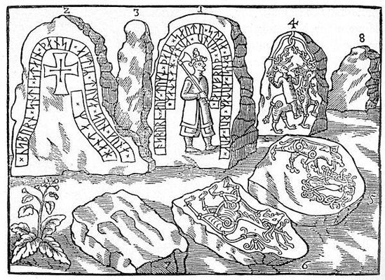 The Hunnestad Monument , listed as DR 282 through 286 in the Rundata catalog, was once located at Hunnestad at Marsvinsholm north-west of Ystad, Sweden. It was the largest and most famous of the Viking Age monuments in Scania, and in Denmark, only comparable to the Jelling stones. The monument was destroyed during the end of the 18th century by Eric Ruuth of Marsvinsholm, probably between 1782 and 1786 when the estate was undergoing sweeping modernization, though the monument survived long enough to be documented and depicted.
