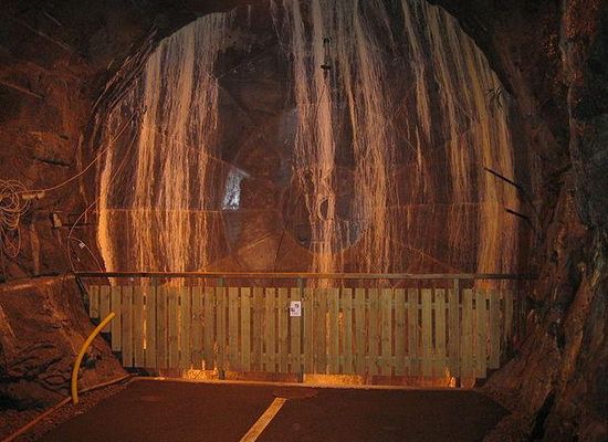 The Äspö Hard Rock Laboratory is a research facility for future geological disposal of spent nuclear fuel. The plant is owned and operated by Svensk Nuclear Fuel Management AB . It was built to test different methods and possibilities for final disposal of spent nuclear fuel. At the laboratory a series of experiments are performed at depths of 500 metres into the bedrock. The laboratory is used by both Swedish and international experts.