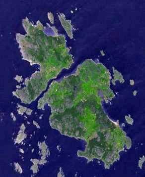 The Koster Islands situated 10 km west of Strömstad, Sweden, comprises an archipelago surrounding the two largest islands, South Koster and North Koster. South Koster has an area of 8 km2 and North Koster an area of 4 km2. The landscape, dominated by smooth bedrock, bears witness to volcanic activity and subsequent wear due to the Ice Age. The rocky coastline is broken by many sandy beaches the largest being Kilesand on South Koster's east side overlooking the 200 meter deep Koster Fjord.