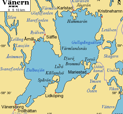 Djurö is an island, a surrounding archipelago of some 30 islands, and a national park situated in Sweden's biggest lake, Vänern. Established in 1991, the national park has an area of 24 km2 , and includes all the islands of the archipelago.