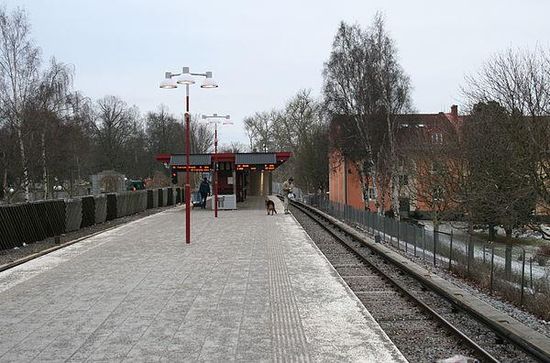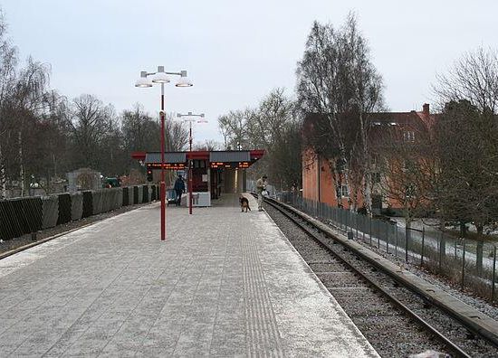 Sandsborg metro station is a station on the green line of the Stockholm metro, located in Gamla Enskede, Söderort. The station was inaugurated on 1 October 1950 as part of the inaugural stretch of Stockholm metro between Slussen and Hökarängen. The distance to Slussen is 4.4 km .