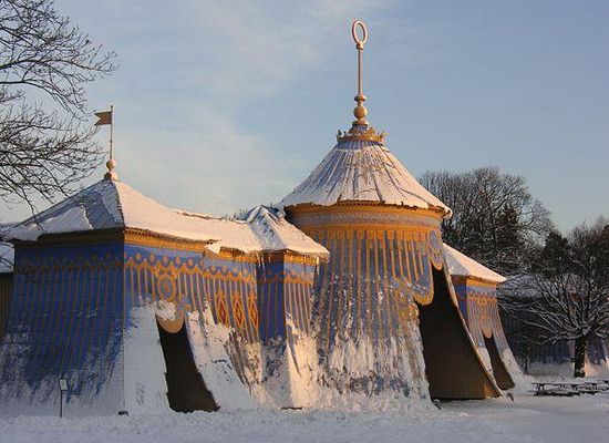 Gustav III's Pavilion is a royal pavilion at the Haga Park, 2 km north of Stockholm. As a highlight in Swedish art history, the Pavilion is a fine example of the European neoclassicism of the late 18th century in Northern Europe. Beside the Pavilion lie the "Sultan's Copper Tents", buildings designed to resemble big tents.