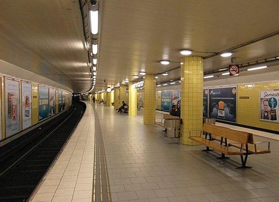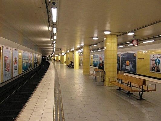 Rådmansgatan is an underground station on the Green line of the Stockholm metro. It lies below Sveavägen between its junctions with Rådmansgatan and Rehnsgatan in the district of Vasastaden and borough of Norrmalm in central Stockholm. The station has a single island platform, some 8 metres below street level, and is accessed via a pair of ticket halls at each end of the station. The ticket halls are accessed via staircases and lifts from the street above.