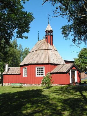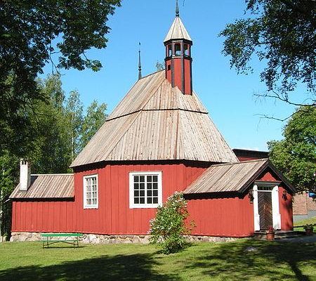 Helena Elisabeth Church was built on one of the largest islands of the Holmöarna group near Umeå in northern Sweden. Decades after the church was replaced with a larger building, in the 1950s the structure was moved to Västerbottens museum where it is still a church and an exhibit.