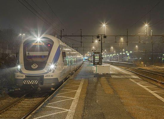 Märsta is a railway station located in Märsta in Sigtuna Municipality, Stockholm County, Sweden. The station is located 36.5km north of Stockholm C, on the Swedish East Coast Line . The station serves long-distance and regional SJ trains, and since 1968 has also been a northern terminus for Stockholm's commuter trains. The station opened in 1876, ten years after the inauguration of the Stockholm-Uppsala railway line. The current station building was built in 1914 and, but severely in a fire in May 2000. Demolition was first considered but it was then decided that the building would be rebuilt.