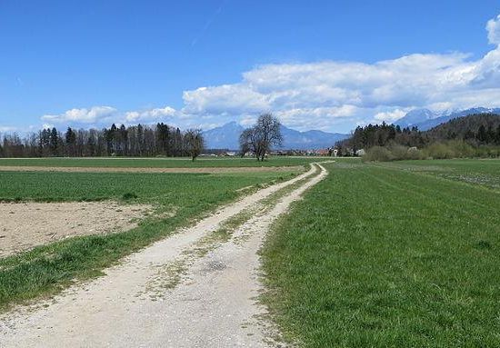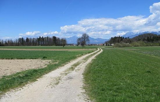 The Skaručna Basin has a characteristic mixed cultural landscape, with meadows, tilled fields, pastures, watercourses, vegetation corridors, hedgerows, isolated hills, and settlements on the edge of the floodplain. Graben Creek starts at Loess Pond in the northeast part of the basin; the pond is a former clay pit created about 200 years ago where ice was also harvested until the First World War. Graben Creek runs along the southeast edge of the basin, fed by Brodnek Spring, Smrekar Spring , and Štefan Spring The basin includes the settlements of Vojsko, Skaručna, Vesca, Selo pri Vodicah, and Šinkov Turn.