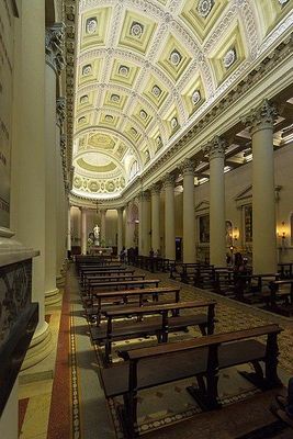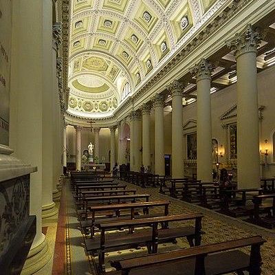 The Basilica di San Marino is a Catholic church located in the Republic of San Marino. While the country has a distinct domination of historic religious buildings of Christian faith, the basilica is the main church of the City of San Marino. It is situated on Piazzale Domus Plebis in the northeastern edge of the city, adjacent to the Church of St. Peter. It is dedicated to Saint Marinus, the founder and patron of the Republic.