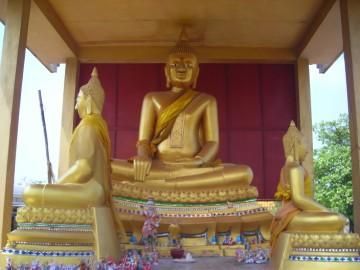 Wat Monthop was a ruin situated closely southeast of Wat Phanan Choeng. It is now viewed as part of the larger temple. In situ are a very large Chinese graveyard and a small Chinese shrine. The remains of the ruin known as Wat Monthop have been placed at an open-air structure in the center of the graveyard. Its Buddha image can be seen from the road.