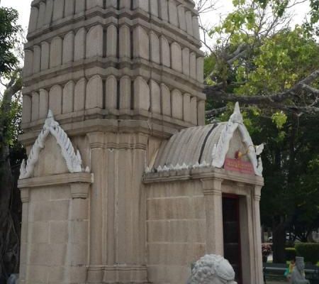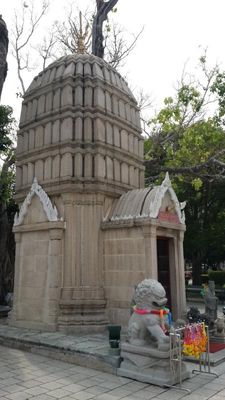 Ho Hem Monthian Thewarat or the Tower of the Golden Palace is a small stone structure in the form of a Khmer-styled prasat built in the reign of King Chulalongkorn in 1880. The shrine, being a Khmer prang, was constructed by Prince Pradit Worakan in accordance with King Chulalongkorn's command. The structure was dedicated to King Prasat Thong of Ayutthaya, the literal translation of whose name is the King of the Golden Palace, because a miniature Khmer-style tower was discovered here. Rama V had the shrine built because of a promise he made when hearing of the fatal accident of the boat of his Queen, praying the Crown Prince Maha Vajirunnahit would be safe.