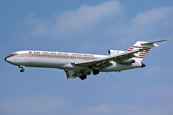 The Boeing 727-200 was built in 1974 with serial number 20982 and was equipped with three Pratt & Whitney JT8D-15 turbofan engines. Flight 452 was carrying 146 passengers and 8 crew members. The captain was Celal Topçuoğlu, the first officer was Sacit Soğangöz, and the flight engineer was Ahmet Bursali.