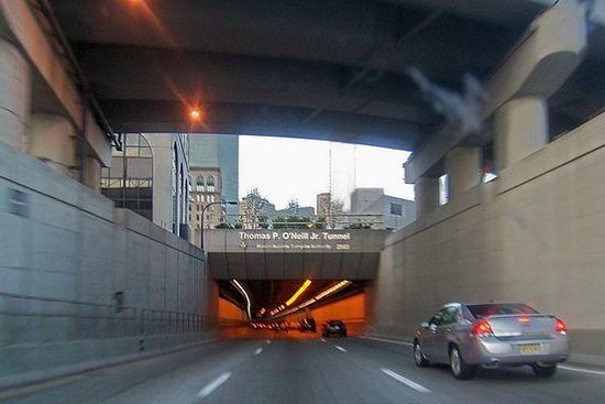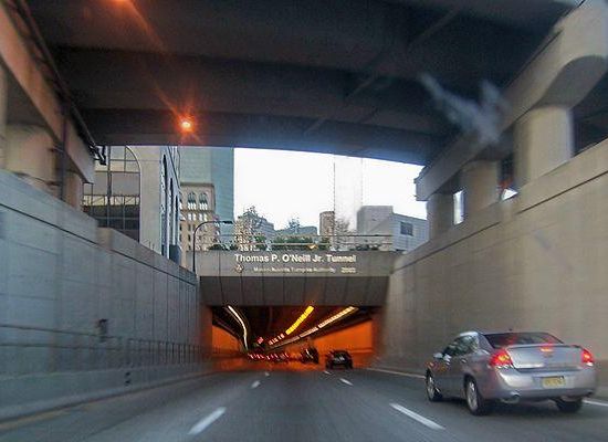 The Thomas P. "Tip" O'Neill Jr. Tunnel is a highway tunnel built as part of the Big Dig in Boston, Massachusetts. It carries the Central Artery underneath downtown Boston, and is numbered as Interstate 93 , U.S. Route 1 , and Route 3. It roughly follows the route of the old elevated Central Artery, though the northbound entrance, at the corner of Kneeland Street and Atlantic Avenue, is somewhat east of the southbound exit to allow for a reconfigured interchange with the Massachusetts Turnpike. It runs from the Zakim Bunker Hill Bridge at its north portal—barely 165 feet east of the TD Garden sports facility's eastern corner—to Boston's Chinatown at its south portal. The tunnel is named for Tip O'Neill, former Speaker of the United States House of Representatives.