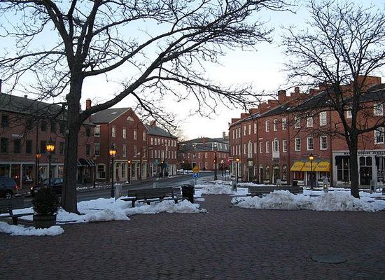 The Market Square Historic District of Newburyport, Massachusetts encompasses an area of the city near the Merrimack River that was completely rebuilt after a major fire in 1811. Over the next twenty years the area was rebuilt under a building code requiring either brick construction or size limits on wood frame buildings. As a consequence the Market Square area has a remarkable concentration of Federal style brick buildings. Among the most notable are the Custom House, now a museum, and the 1823 Market House, which forms the district's eastern boundary. The district includes Market Square and properties fronting on State, Merrimac, Liberty, and Water Streets. It was listed on the National Register of Historic Places in 1971.