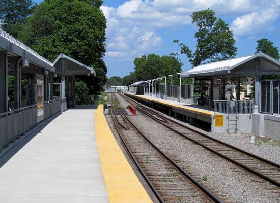 Four Corners/Geneva is an MBTA Commuter Rail station in Boston, Massachusetts. It serves the Fairmount Line. It is located in the Mount Bowdoin section of the Dorchester neighborhood. The new station was being built as part of the Fairmount Line Improvement Project, which included four new stations as well as infrastructure upgrades. It has two full-length high-level platforms with walkways connecting them to Washington Street and Geneva Avenue. Four Corners/Geneva Ave opened on July 1, 2013, along with Newmarket.