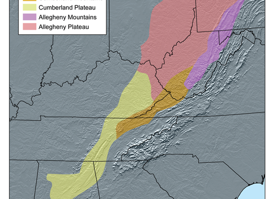 According to the USGS, the Cumberland Mountain range is 131 miles long and 20 miles wide, bounded by the Russell Fork on the northeast, the Pound River and Powell River on the southeast, Cove Creek on the southwest, and Tackett Creek, the Cumberland River, Poor Fork Cumberland River, and Elkhorn Creek on the northwest. The crest of the range forms the Kentucky and Virginia boundary from the Tennessee border to the Russell Fork River.