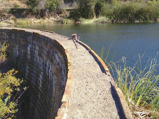 Although not a major dam, Banning Dam is among the oldest still standing in the state. Nearby Sherwood Dam dates from 1904. It is less than 1 mile east of Lake Sherwood. The structure is located within the Lake Eleanor Open Space. At 37 feet high, and 140 feet long at its crest, the dam is owned by the local Conejo Open Space Conservation Agency.