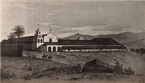 Mission Basilica San Diego de Alcalá was the first Franciscan mission in The Californias, a province of New Spain. Located in present-day San Diego, California, it was founded on July 16, 1769, by Spanish friar Junípero Serra in an area long inhabited by the Kumeyaay people. The mission and the surrounding area were named for the Catholic Didacus of Alcalá, a Spaniard more commonly known as San Diego. The mission was the site of the first Christian burial in Alta California. The original mission burned in 1775 during an uprising by local natives San Diego is also generally regarded as the site of the region's first public execution, in 1778. Father Luis Jayme, California's first Christian martyr who was among those killed during the 1775 uprising against the mission, lies entombed beneath the chancel floor. The current church, built in the early 19th century, is the fifth to stand on this location. The mission site is a National Historic Landmark.