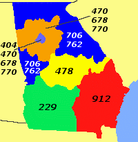 Area code 404 is a telephone area code in the North American Numbering Plan for Atlanta, Georgia and its closest suburbs. This comprises roughly the area encircled by Interstate 285. It is an enclave area code, completely surrounded by area code 770, which serves most of Atlanta's suburbs. Both 404 and 770 are overlaid by area codes 678 and 470.