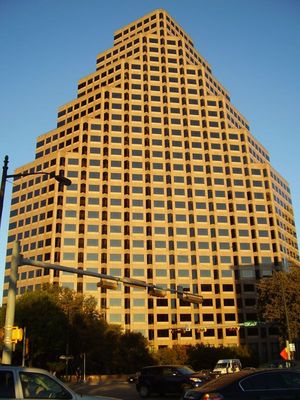 One Eleven Congress, formerly One Congress Plaza, is a skyscraper in Downtown Austin, the state capital of Texas in the United States. Standing 397 feet tall and containing 30 floors, the building is the 17th tallest in Austin. The building contains a sunken plaza, which include trees, a food hall, water features, and park benches, as well as the location for the AMOA Art Show.