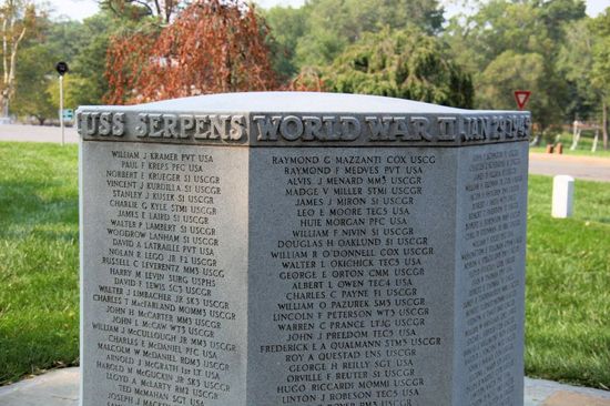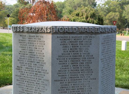 The Victims of Terrorist Attack on the Pentagon Memorial is a memorial over a group burial site at Arlington National Cemetery in the United States. It commemorates the victims of the September 11 attack on The Pentagon. The memorial specifically honors the five individuals for whom no identifiable remains were found. However, a portion of the remains of 25 other victims are buried at the site. The names of the 125 Pentagon employees, as well as the 59 non-terrorist individuals (53 non-terrorist passengers and 6 crewmembers) aboard American Airlines Flight 77 (which crashed into the building) are inscribed on the memorial.
