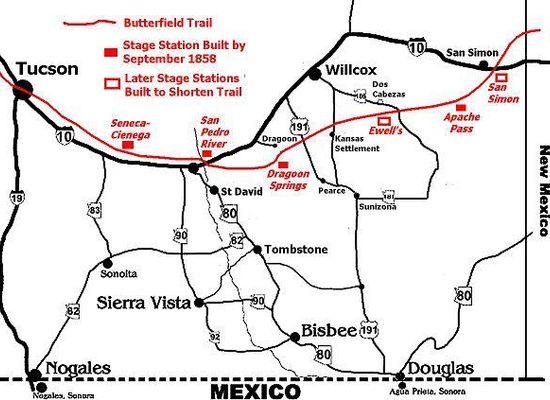 Dragoon Spring was a watering place on the Southern Emigrant Trail in territory which eventually joined the United States in the Gadsden Purchase, becoming part of the New Mexico Territory. Following the purchase, Dragoon Spring was used as a watering place by the San Antonio-San Diego Mail Line, commonly called the "Jackass Mail", starting in July 1857. After Butterfield started service in September 1858, the Jackass Mail was still operating using Butterfield's improved trail.