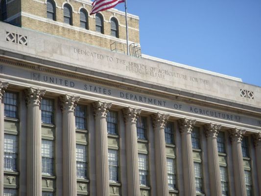 The U.S. Department of Agriculture Administration Building, also known as the Jamie L. Whitten Building, houses the administrative offices of the U.S. Department of Agriculture in Washington, D.C. The Administration Building projects into the National Mall from the larger U.S. Department of Agriculture South Building, and is the only building on the Mall that is not intended for use by the general public. It was the first large Beaux-Arts style building in Washington and set the prototype for the later buildings of the Federal Triangle. The east and west wings were the first Federal office buildings to be built of reinforced concrete. The Whitten Building was listed on the National Register of Historic Places in 1974.