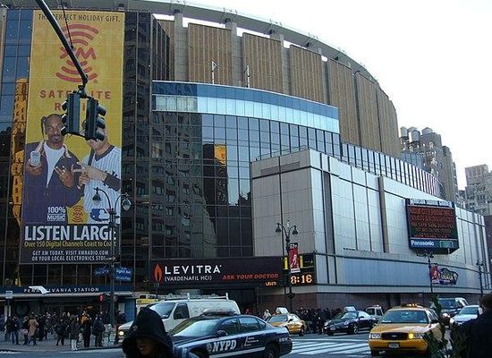 Madison Square Garden was an indoor arena in New York City, the third bearing that name. It was built in 1925 and closed in 1968, and was located on the west side of Eighth Avenue between 49th and 50th Streets in Manhattan, on the site of the city's trolley-car barns. It was the first Garden that was not located near Madison Square. MSG III was the home of the New York Rangers of the National Hockey League and the New York Knicks of the National Basketball Association, and also hosted numerous boxing matches, the Millrose Games, concerts, and other events.