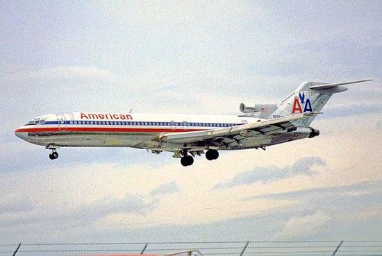 American Airlines Flight 444 was a Boeing 727 flying from Chicago to Washington, D.C.'s National Airport, which, on November 15, 1979, was attacked by the Unabomber Ted Kaczynski. The bomb planted in the cargo hold caused "a sucking explosion and a loss of pressure," which was then followed by large quantities of smoke filling the passenger cabin, forcing the pilots to make an emergency landing at Dulles International Airport. Twelve passengers had to be treated afterward for smoke inhalation. It was later determined that the bomb was powerful enough to have destroyed the aircraft if it had worked correctly.
