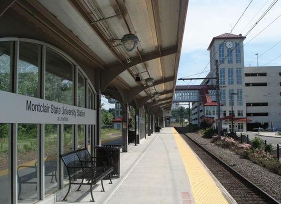 On weekdays, every train on the Montclair-Boonton Line stops here. Midtown Direct service to New York Penn Station terminates here, as the line west of the nearby yard is not electrified. The station is a major transfer point for riders because many trains terminate here, it is the first station on the line with service to New York Penn Station, and it is the first local stop of express trains. The station is a sheltered, two-tracked island platform with an elevated walkway over the tracks connecting it to the parking deck and the college campus. The station is equipped with ticket machines and DepartureVision monitors displaying arrivals and departures. It is accessible as the platform is fully elevated and elevators are available in addition to stairs. The station was intended to be a park-and-ride, near a highway and with a large parking deck.
