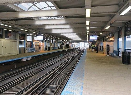 Clark/Lake is an 'L' station located at 100/124 West Lake Street in Chicago's Loop district, and is accessed from the James R. Thompson Center and 203 North LaSalle building. It is one of the most complex stations on the 'L' system, comprising an elevated station and a subway station. The elevated station is serviced by the Brown, Green, Orange, Pink, and Purple Lines, while the subway platform is serviced by the Blue Line. In December 2014 it had an average of 17,644 weekday passenger entrances, making it the second busiest station in the 'L' system. The Richard J. Daley Center, Chicago City Hall, and Chicago Title and Trust Center are also served by the station. It is the busiest station on the Loop Elevated, and the second-busiest station on the 'L' system as of December 2014. This station has been recognized as the station with the most pickpockets by ABC 7 Chicago.