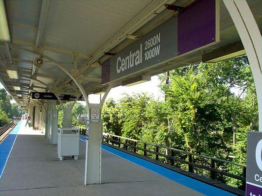 Central is a Purple Line station of the Chicago Transit Authority 'L' system. Located at 1024 Central Street in Evanston, Illinois , the elevated platform sits above Central Street, half a block west of Ridge Avenue. The station itself, a Beaux-Arts structure designed by noted transit architect Arthur Gerber, is on the south side of Central Street and is entered at street level, with an auxiliary exit on the north side of the street.
