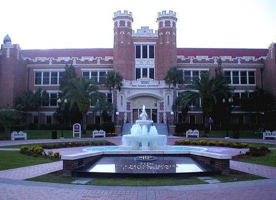 On the plaza you can see many different commemorative bricks completely around it which was a gifted project done by the classes of 1996 and 1997. They were finally put in place in 1998 after getting donations from other classes, alumni, teachers, and faculty. The various names, dates, and events that happen involving the University and its students continue to be placed on to these commemorative bricks. Built in 1910, the Westcott building was named after James Diament Westcott, Jr. who was an early contributor to Florida State University; his estate was valued at $100,000.