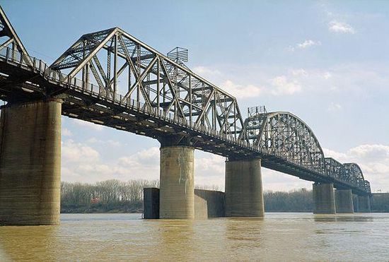 The Kentucky & Indiana Bridge, which spans the mighty Ohio River at the Falls of the Ohio, was designed to connect the cities of New Albany, Indiana and Louisville, Kentucky, and to bring their residents closer together. Citizens of New Albany and Louisville who conceived the bridge described its purpose in Articles of Association for the Kentucky and Indiana Bridge Company filed with the Recorder of Floyd County, Indiana March 7, 1881. The bridge founders declared, the object and purpose of the Kentucky & Indiana Bridge Company is to construct, own, and operate a bridge from a point in the City of New Albany, Indiana across the Ohio River to a point in the City of Louisville, Kentucky for both railway and common roadway purposes together..