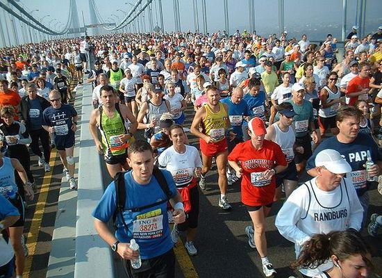 The New York City Marathon is an annual marathon that courses through the five boroughs of New York City. It is the largest marathon in the world, with 52,812 finishers in 2018 and 98,247 applicants for the 2017 race. Along with the Boston Marathon, it is among the pre-eminent long-distance annual running events in the United States and is one of the World Marathon Majors.
