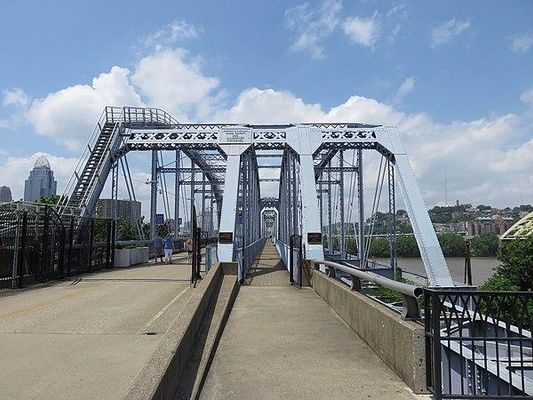 The original bridge first opened on April 1, 1872, under the name Newport and Cincinnati Bridge, and was Cincinnati's first railroad bridge spanning the Ohio River. The bridge piers were built with stone from Adams County, Ohio. The present bridge, which was built on the original piers , opened in 1897 to streetcar, pedestrian and automobile traffic.