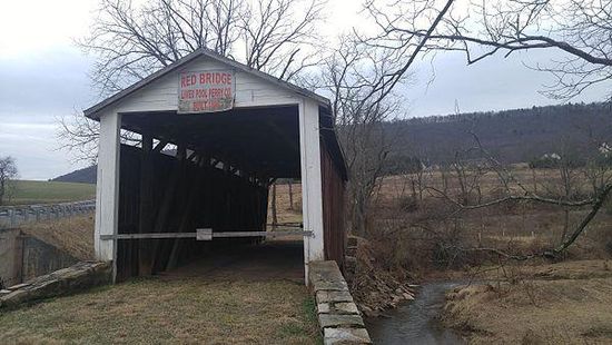 The Red Covered Bridge is a historic, wooden covered bridge located in Liverpool Township in Perry County, Pennsylvania, USA. It is a 55-foot-long King post bridge, constructed in 1886. It crosses Bargers Run.