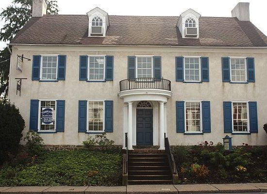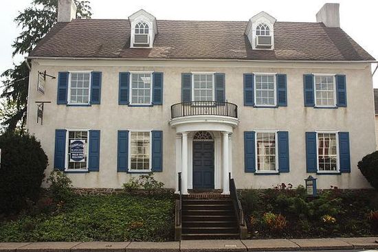 Enoch Roberts House, also known as the Trainer Mansion, is a historic home located at Quakertown, Bucks County, Pennsylvania. It was built about 1814, and is a 2 1/2-story, five bay, plastered fieldstone dwelling in a vernacular Georgian style. It has an original stone rear kitchen ell. It has a gable roof with dormers added in the 1830s and a semi-circular entrance portico added in the 1940s.