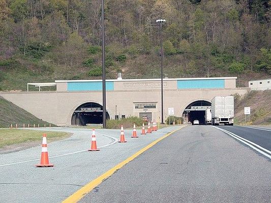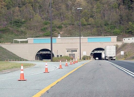 Tuscarora Mountain Tunnel is one of four original Pennsylvania Turnpike tunnels still in active use. A second tube was bored in the late 1960s to ease traffic conditions. The Tuscarora Mountain tunnels measure 1.1 miles in length and are the second-longest active tunnels on the Pennsylvania Turnpike system. The 1.3-mile-long Sideling Hill Tunnel is the longest overall, but was abandoned in 1968. Allegheny Mountain Tunnel is the longest in active use. The Tuscarora Mountain Tunnel sits on the Huntingdon/Franklin County line.
