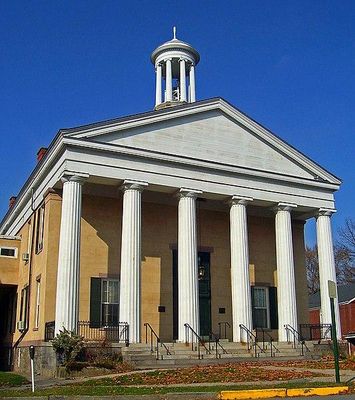 The 1841 Goshen Courthouse is located along Main Street in the center of Goshen, New York, the seat of Orange County, New York, United States. It was designed by popular local architect Thornton Niven in a Greek Revival style, meant to be a twin of the one he had already built in Newburgh, which at that time shared seat duties with the larger city. Construction of the building was approved by the county legislature in April 1841 and began shortly thereafter.