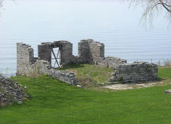 Aurora Steam Grist Mill was a historic grist mill located in Aurora, Cayuga County, New York. It was a monolithic, 3 1⁄2-story rectangular stone structure built on the shore of Lake Cayuga. It was one of the first mills built west of the Hudson River to be powered by steam. In 1974, the building's roof collapsed due to neglect and plans were to restore it for use as a community center. It was largely intact until 1992, when Wells College began to demolish it in order to build a dock behind the Aurora Inn.