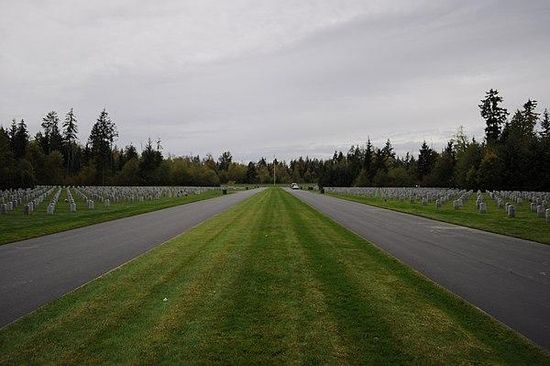 Tahoma National Cemetery was established by the Department of Veteran Affairs on November 11, 1993, purchasing 160 acres from the Washington State Department of Natural Resources for $1.6 million. It was intended to house 13,000 graves and reach capacity by 2040. Congress approved $10.6 million in funding to build the cemetery in 1994 and design work began the following year. The cemetery was dedicated on September 26, 1997, and opened for interments on October 1.